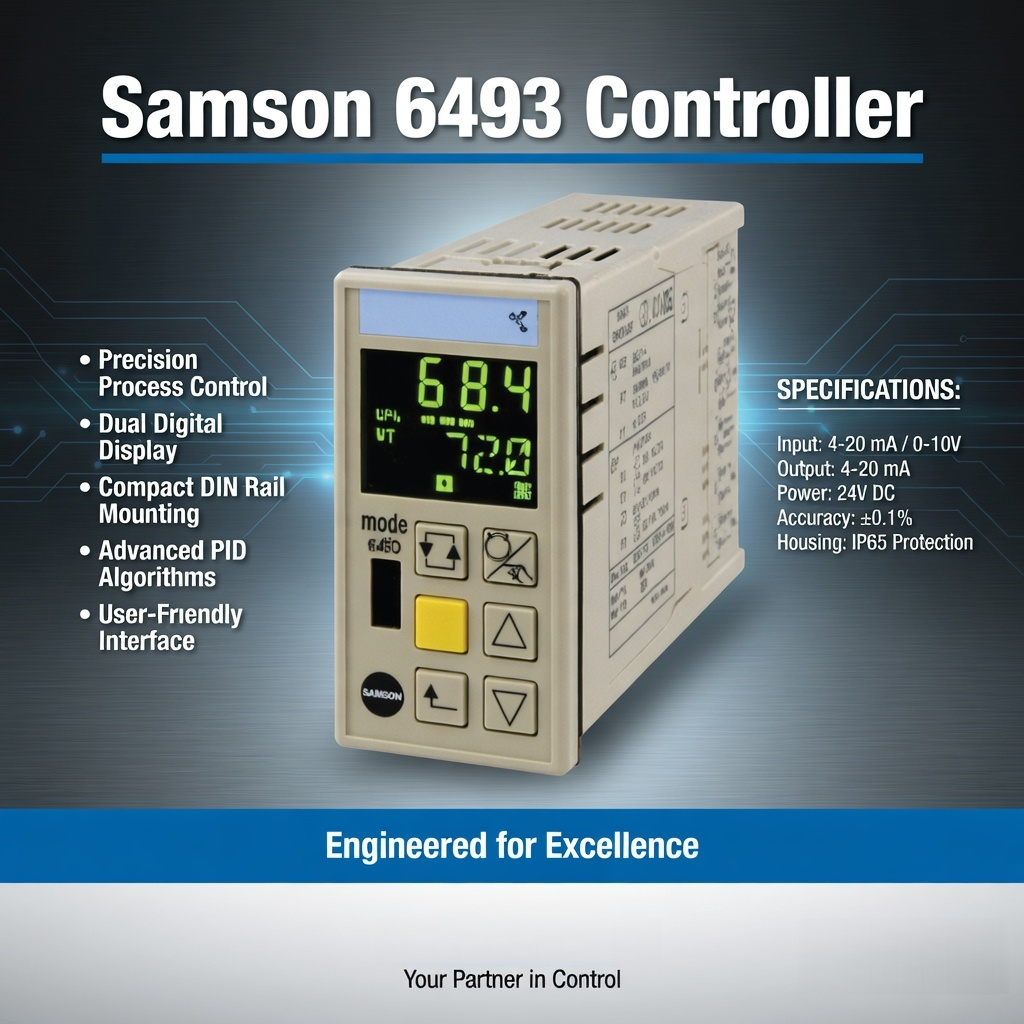 The SAMSON Type 6493 is a pneumatic differential pressure controller used for maintaining a constant differential pressure between two points in a process system. It is a classic, force-balance type controller with a diaphragm measuring system. No electricity is required — it uses only supply air to produce a pneumatic output signal. Many older plants and safety-critical systems still use it because of its simplicity, high reliability and long service life in harsh environments.